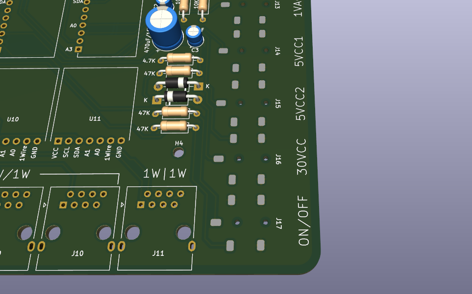Almost no part had predefined footprints. I had to make them in KiCad. I spent maybe more time drawing component footprints than “wiring” the PCB. The time spent triple checking the clearances and the part footprints, paid off greatly! Because at the mounting, they fit snugly! Awesome! And very satisfying when soldering a 12 pin RJ45! (eight plus four guidance and ground)