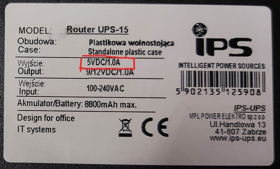 I wanted to have a UPS capability to the Raspberry. I located a 5V UPS brick from TME. On the specs, it can supply 2 Amps, at 5V, through the USB port! “Shut up and take my money!“