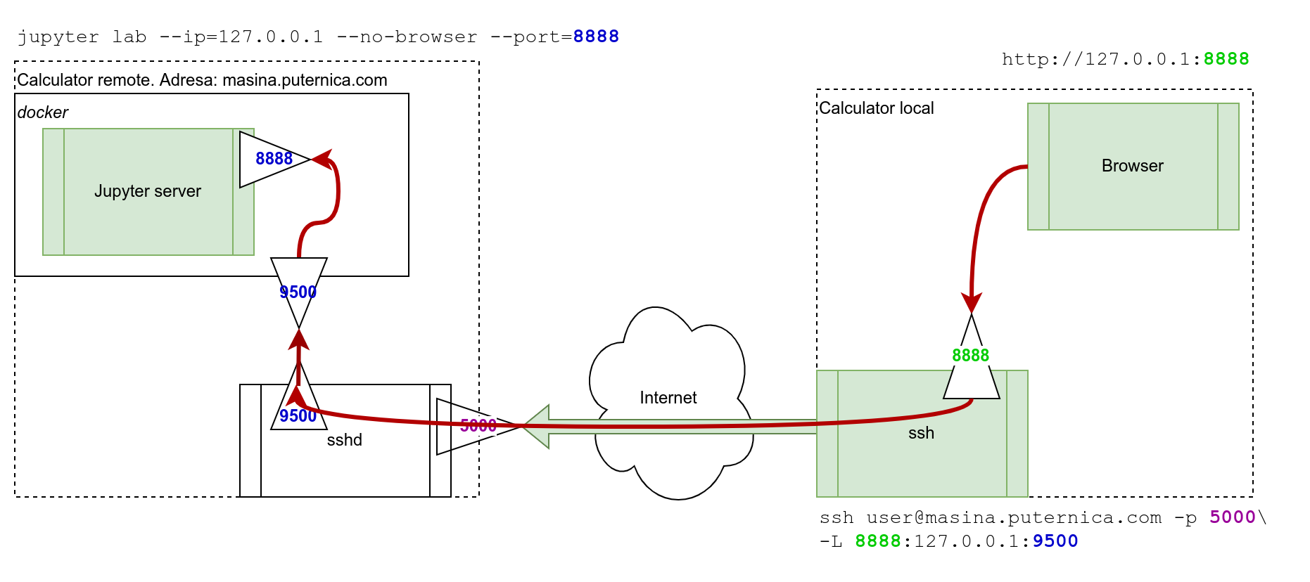 Observatie: Implicit serverul de jupyter porneste cu un token de acces. Doar in scopuri de debug, puteti da --NotebookApp.token='' --NotebookApp.password='' ca sa nu faca acest lucru.