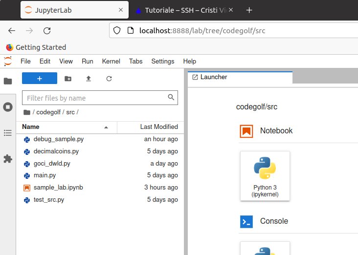 Observati mesajele. Ar trebui sa porneasca serverul de jupyter. Daca apar erori, e posibil sa nu fiti in directorul corect (/workspace/)